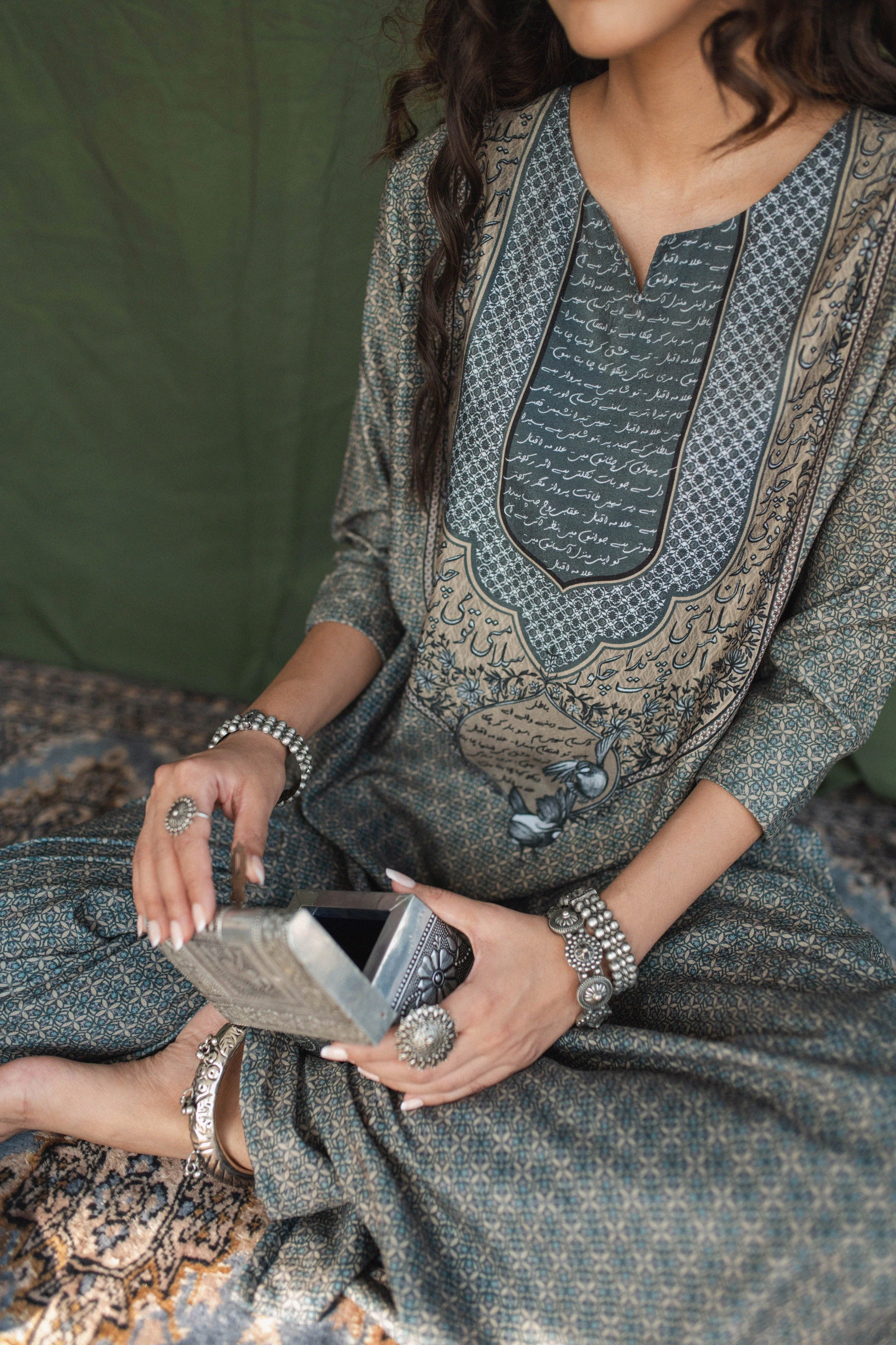 - Bell Sleeves With Allama Iqbal Poetry