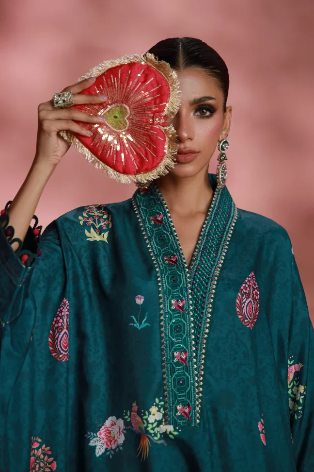 - Wide Banded Collar with Sequin Embroidery on the Neckline